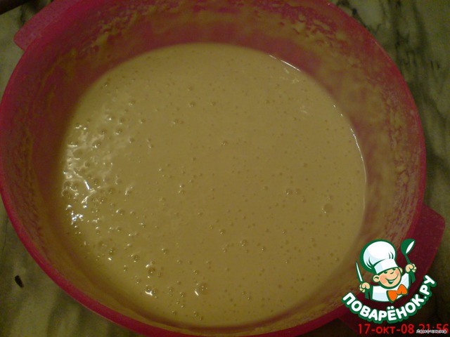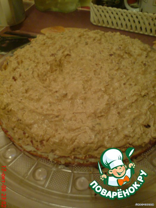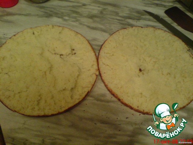 Форму смазать, в неё вылить тесто и поставить в разогретую духовку (180-200 С).Выпечь таким образом 2 коржа