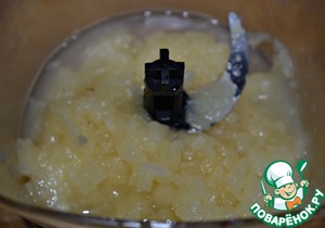Консервированные ананасы (половина банки 560-580 мл, пять колечек) мелко нарезать ножом или измельчить в блендере.