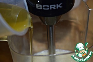 Не переставая взбивать, тонкой струйкой влить оливковое масло (можно и подсолнечное, но чтобы оно было гарантировано БЕЗ запаха).