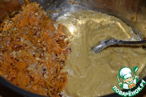 Смешать яичную массу с мучной.