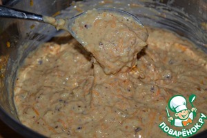 И добавить получившееся тесто к орехам, тыкве и ананасам.