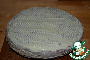 Остывший корж разрезать на 2-3 части