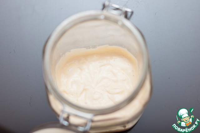 Для оливье я готовила домашний майонез, на сайте масса рецептов. У меня вот такой - в баночку добавить 1 ст. л. лимонного сока, 1/4 ч. л. соли, 1/2 ч. л. сахара, влить 130 мл растительного масла и 1 яйцо. Взбить погружным блендером с ножами.
