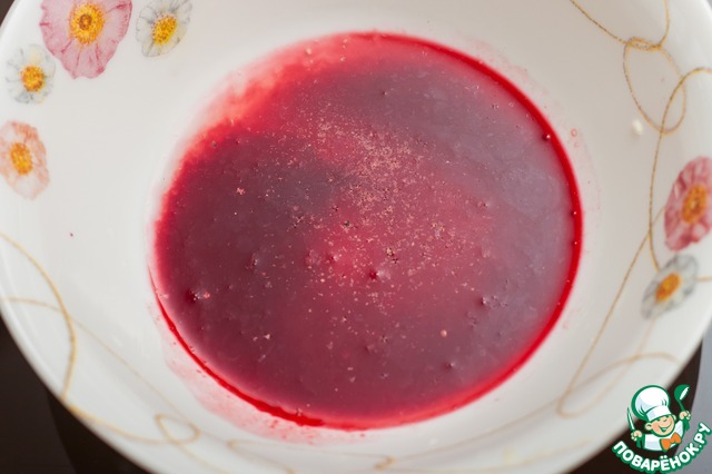 Приступаем к необычному винегрету. Делаем заправку - из вареной или свежей свеклы выжимаем сок, смешиваем с лимонным соком, медом, перцем и солью.