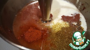 Добавить паприку, хмели-сунели, смесь перцев, соль, белки и сметану.