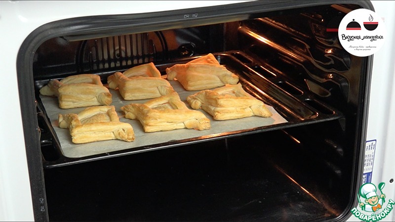 Готовые конвертики ставим в разогретую до 200˚C духовку минут на 10-15.
