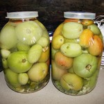 Искал я, искал похожий рецепт на сайте, чтоб свою фотку добавить к рецепту, так и не нашел.. Поэтому не обессудьте, выкладываю свою засолку на ваш суд. Просто, быстро, но зимой очень вкусно. Всегда любил и люблю зеленые, хрустящие соленые помидоры. Дочка любит такие же, а жена красные. Поэтому нашли золотую середину и солим вместе и те и те. Начнем...