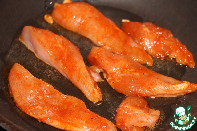 - Филе куриное (предварительно замаринованное с паприкой, медом, оливковым маслом и соевым соусом) — 1 шт