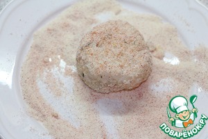 Из шариков сформовать круглые биточки, запанировать в подготовленной панировке.