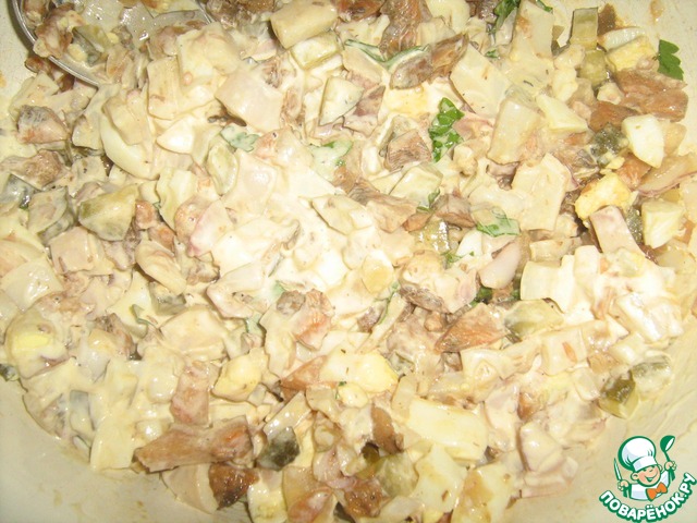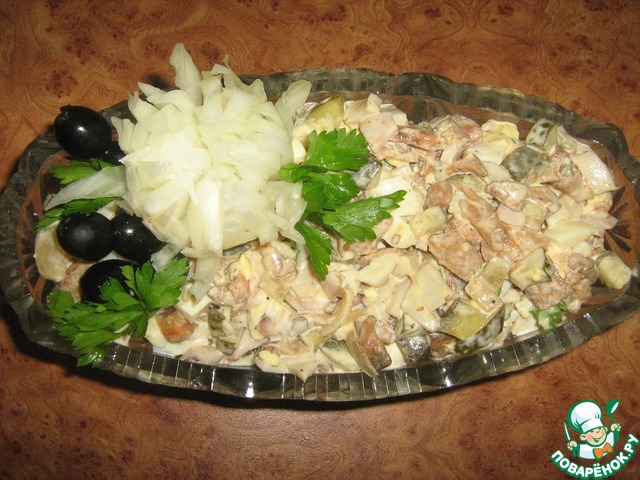 Ингредиенты для «Салат с кальмарами и грибами»: