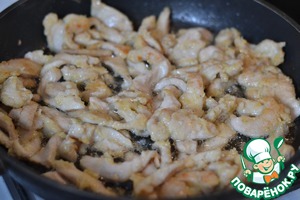 Выкладываем филе на разогретое подсолнечное масло и обжариваем на сильном огне.