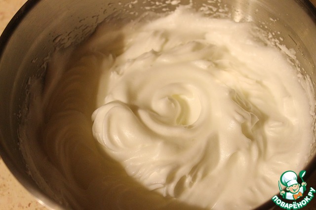 Для бисквита: белки взбить с лимонным соком в крепкую пену.