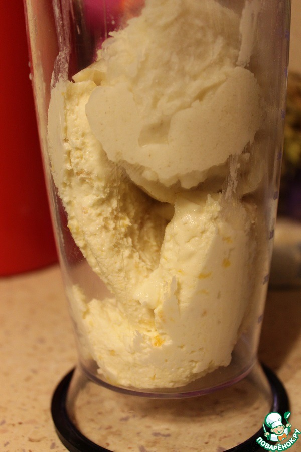 Творожную массу положить в стакан для взбивания, добавить 5 ст. л. с горкой густой манной каши.