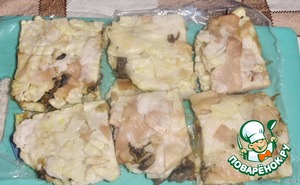 Через 40 мин спрессованную лапшу нарежьте квадратиками,