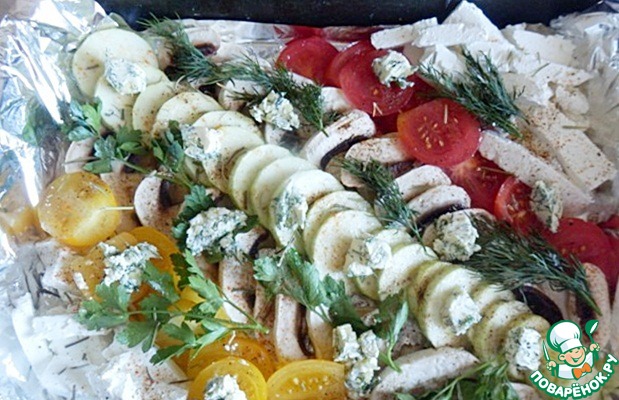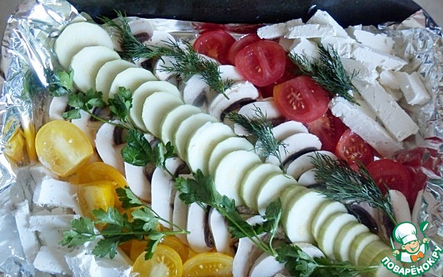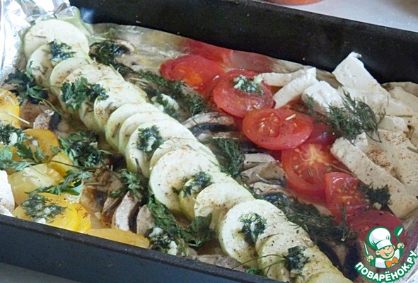 Рецепт «Запеченные овощи с брынзой и грибами»: