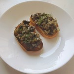 Дальше на гренку кладем немного зелени петрушки, а сверху грибную массу.