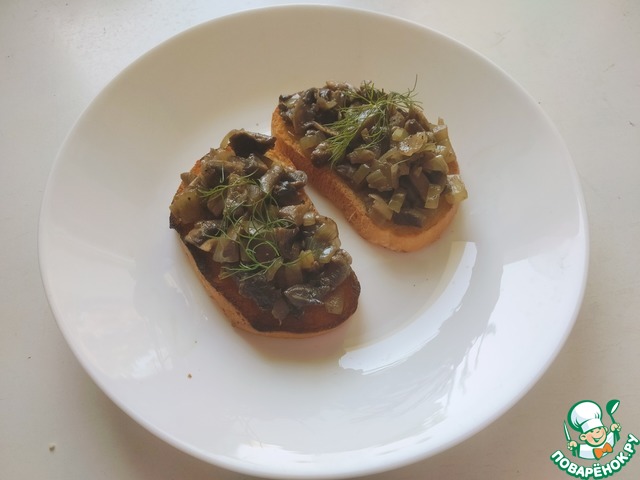 Рецепт «Закусочные чесночные гренки с грибами»: