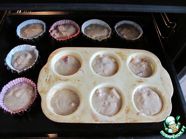 Рецепт «Кексы с персиками и малиной»: