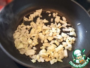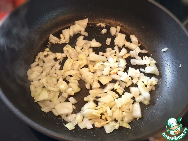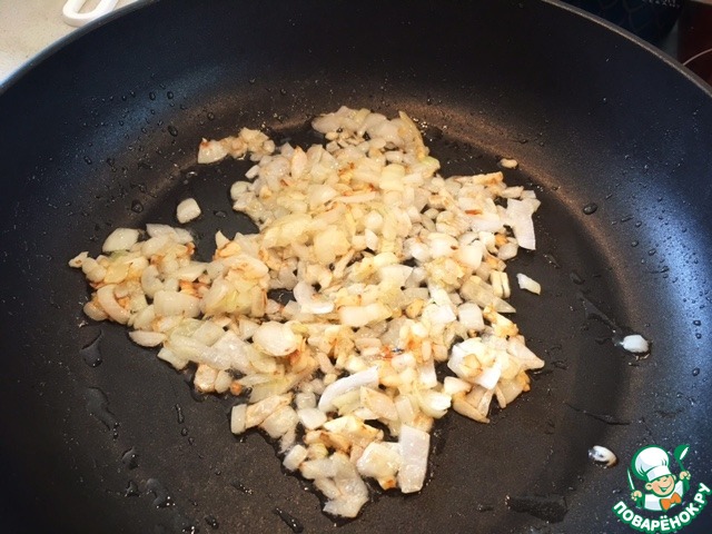 Для начала, приготовьте все ингредиенты. Нарежьте лук и поджарьте до прозрачности. -