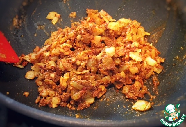 Добавьте к луку со специями. Все перемешайте.