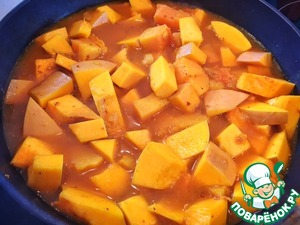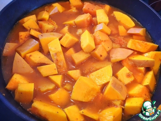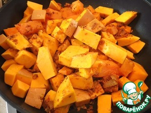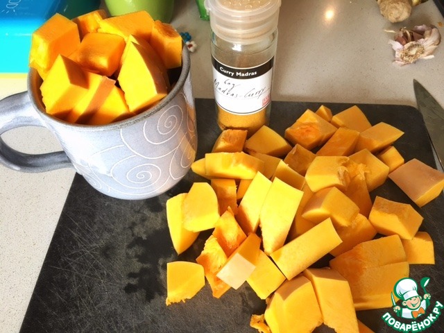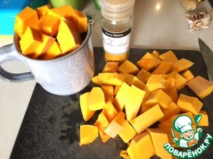 Нарежет тыкву небольшими кусочками, так она быстрее приготовится.