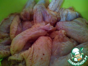 Куриные крылышки обмыть и обсушить. Кончики отрезать.