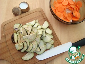 Готовим овощи. Режем произвольно. Нужно порезать тонко, чтобы овощи по времени вместе с рыбой были готовы.