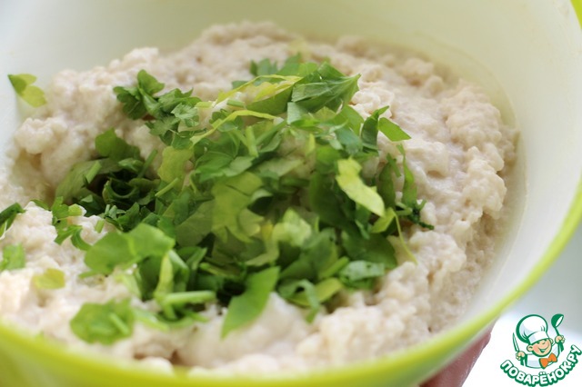 Измельчить блендером, добавить мелко нарезанную зелень.