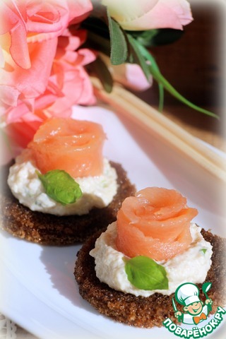 К сожалению я так и не научилась готовить роллы и суши, но я их просто обожаю! И тут в интернете нашла рецепт острого рисового паштета, в который входят почти все ингредиенты, которые нужны для производства роллов, попробовав, я была в полном восторге от его вкуса, он был нежный, с пикантной остринкой, решила подать его на жаренных тостах из Бородинского хлеба и украсить розами из малосольной горбуши. Получилась оригинальная закуска с вкусом роллов.