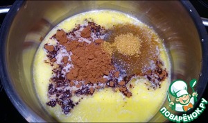 Затем добавляются сахар и какао-порошок.