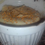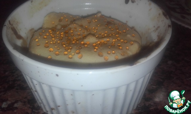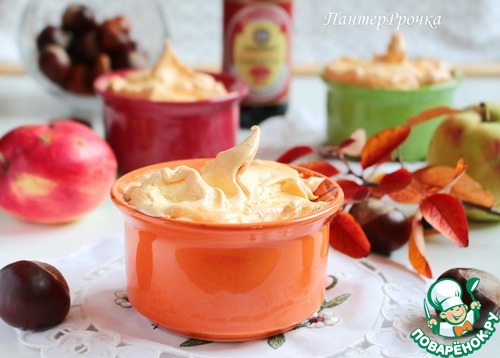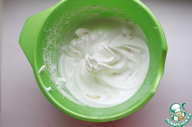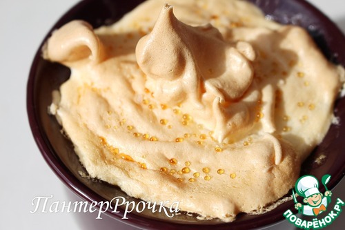 По прошествии 30 минут рамекины достать, температуру снизить до 150 градусов. Сверху выложить белковую массу и поставить в духовку на 20 минут. Можно подавать в горячем или холодном виде. Мне больше нравится в холодном.