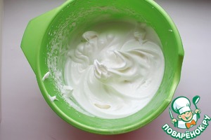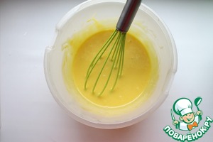 Отделить белки от желтков. Взбить сгущенное молоко с желтками до получения однородной, гладкой массы.