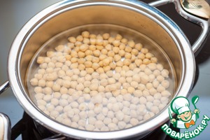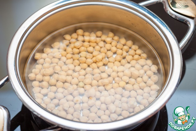 • Утром нут промываем, закладываем в кастрюлю Zepter и заливаем водой из соотношения 1:2. Не солить!