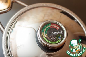 • Закрываем крышкой и ставим на средний нагрев. Готовим 15 минут, стрелка на термоконтроллере не должна выходить за пределы зеленого поля.