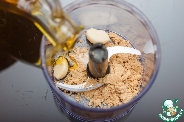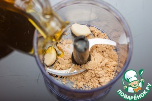• Перекладываем кунжут в блендер, добавляем зубчики чеснока, немного оливкового масла, соль и измельчаем в однородную пасту.