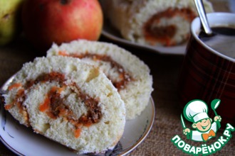 Сворачиваем плотным рулетом и отправляем в духовку, разогретую до 180 градусов, на 30-35 минут.