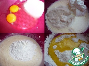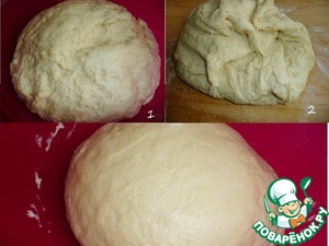 Добавить муку и продолжить замес теста. В конце добавить растительное масло. Замесить очень мягкое тесто, которое не будет липнуть к рукам и столу.