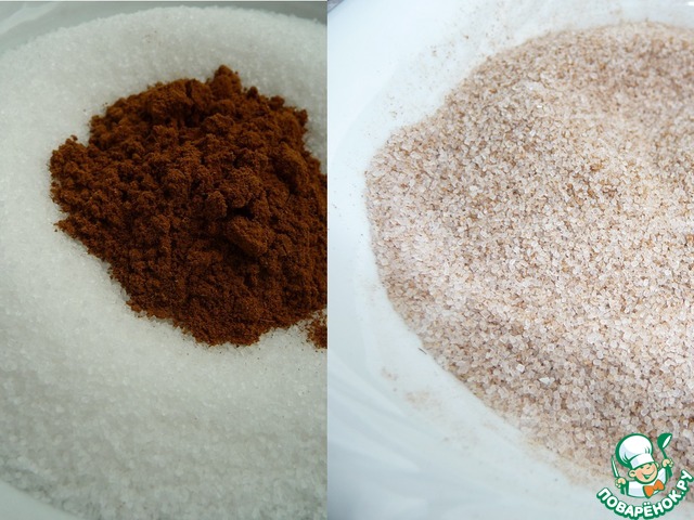 Подготовим начинку - корицу смешать с сахаром.