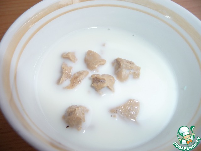 В тёплом молоке,1ч. л. сахара растворить дрожжи (оживить).