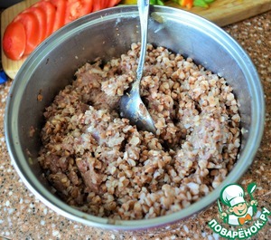 Затем добавить к фаршу 10 ст. л. гречневой каши. Перемешать.