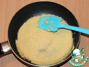 Кладем 1 ст. л. массы с верхом на середину сковороды...
