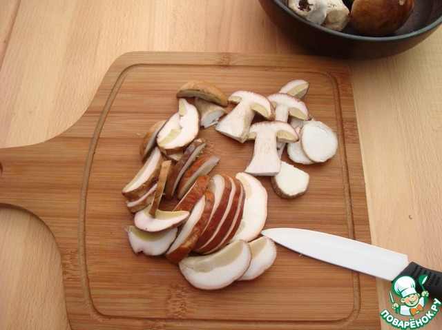 Режем. Грибы белые режу довольно крупно. Очень люблю их в супе ощущать и разжёвывать.