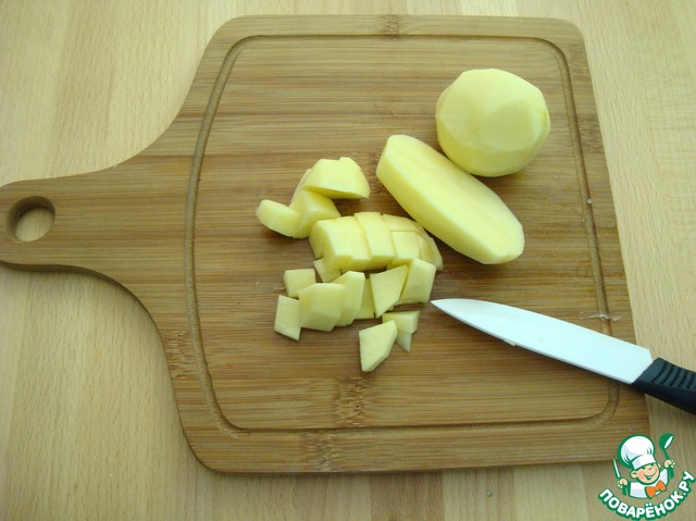 В воду выкладываем грибы, варим минут 5 и отправляем к ним картофель и лук. Солим по вкусу.