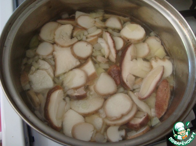 сметану.Почему бабушка в этот суп клала манку? Бульон от белых грибов тягучий, а манка делает его плотней. Она совершенно не ощущается в супе, но как же вкусно! Попробуйте!