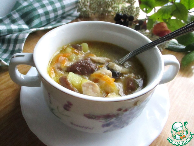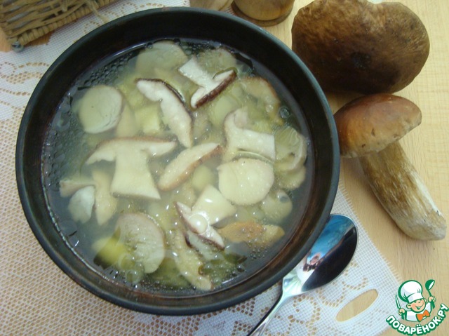 Хочу с вами поделиться рецептом моей бабушки. Суп из белых грибов она почему-то варила только так. Говорила, что вкус белого гриба не хочет ни с чем мешать. Очень она его любила и меня приучила. Я так суп варю давным-давно и очень люблю. В суп добавляется манная крупа и в состав его входят грибы, картофель и лук. Заправляется суп подсолнечным маслом.