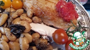 Ингредиенты для «Курица, фаршированная фасолью и грибами»:
