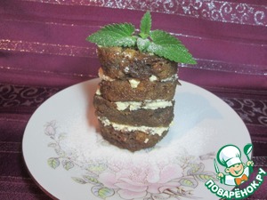 Приготовить начинку: смешать творог и мед в однородную массу. Сложить кружочки теста друг на друга, промазывая их начинкой. Украсить листочками мяты, посыпать сахарной пудрой.
