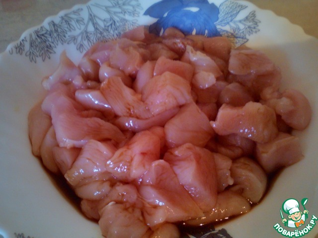 • Нарезать кусочками, залить соевым соусом и оставить на 1 час.