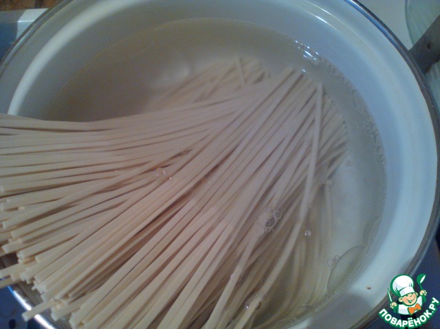 • Лапшу удон отварить в подсоленной воде, согласно времени указанному на упаковке.
