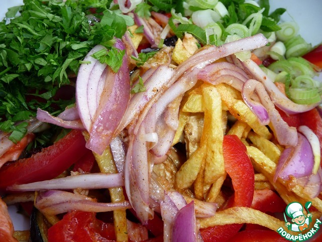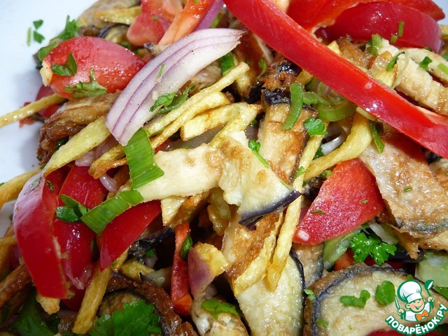 Вкусный, яркий, сочный салат, который можно подать для мясных или рыбных блюд, а также использовать как гарнир. Рецепт встретился на просторах инета. Автору огромная благодарность.